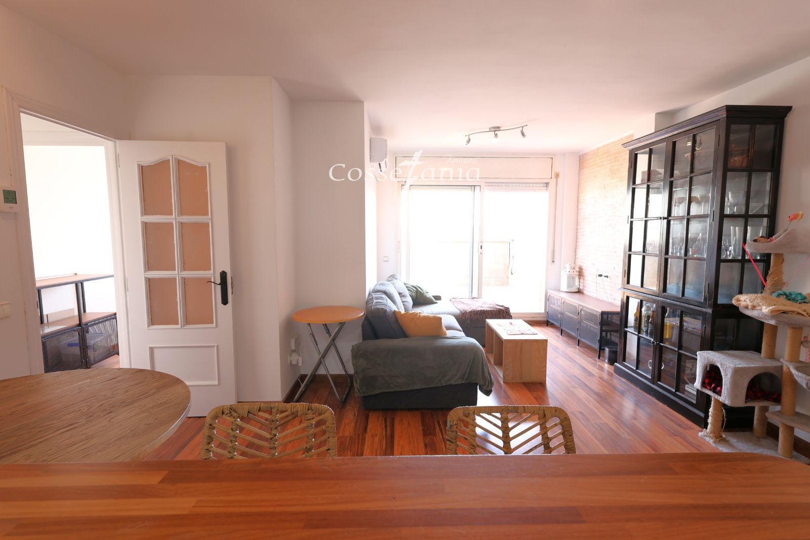 El salón, luminoso y acogedor, se abre hacia el exterior permitiendo que la luz natural inunde cada rincón. La calidez del suelo de madera aporta ese toque de hogar que se siente nada más entrar. Aquí apetece quedarse… sin prisa.