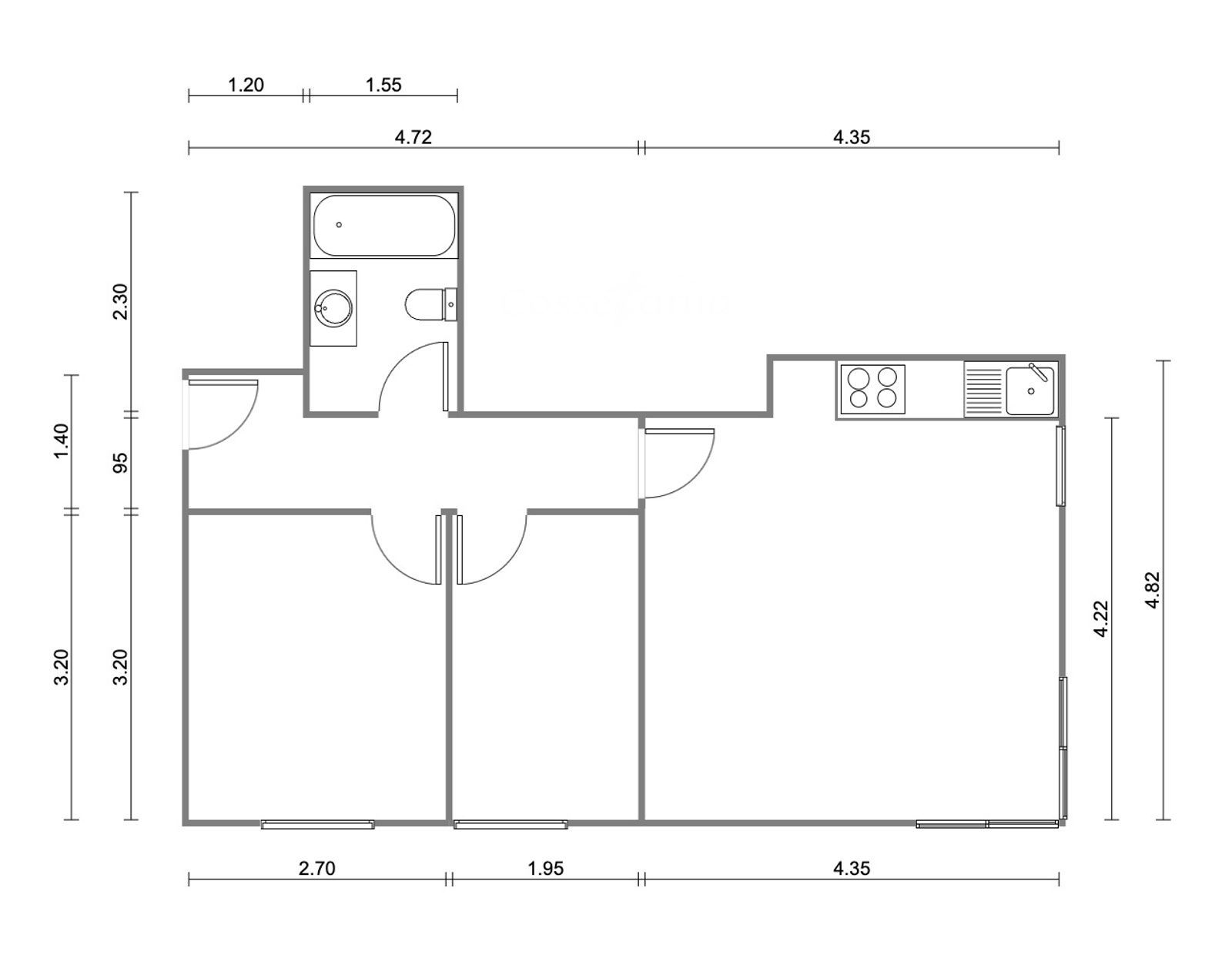Appartement á Calafell, avec 56 m2 et 3 chambres et 1 salles de bain.